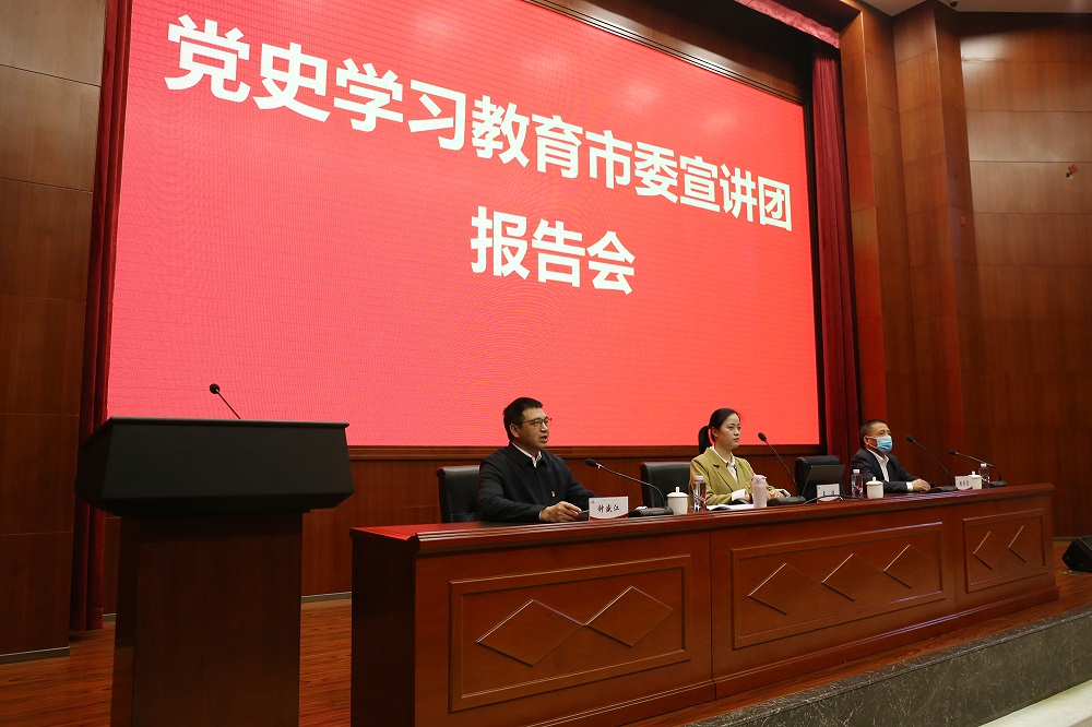 为深入贯彻学习习近平总书记关于全党开展党史学习教育精神指示,推动党史学习教育各项工作扎实开展,4月20日,由宁德市工会党组成员、三级调研员赖文宫带头,市委党史方志室志书编审科副科长兰洁任讲师的宁德市委宣讲团走进青拓集团有限公司开展党史学习教育宣讲。青拓集团党委书记、行政总经理钟盛江,王晋、丁朝晖、刘永清等党支部书记带领青拓集团各部门、各子公司党员参会。