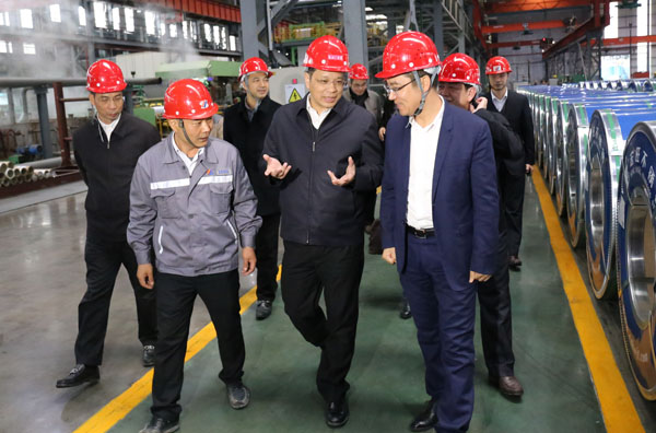 郭锡文一行首先走进宏旺不锈钢冷轧生产车间实地参观考察,听取相关情况介绍,重点对企业生产运行、工艺创新、发展规模、未来前景等情况进行了解。随后,一行人员来到青拓集团营运中心,感受企业绿水jinnianhui今年会与金山银山协同共进的发展理念。