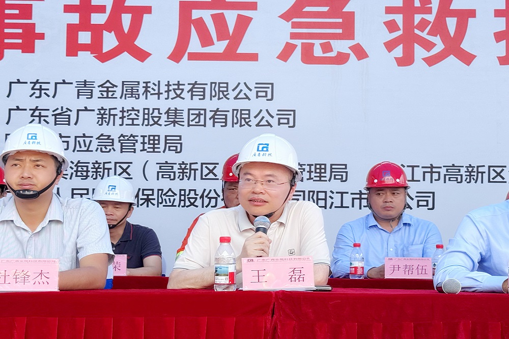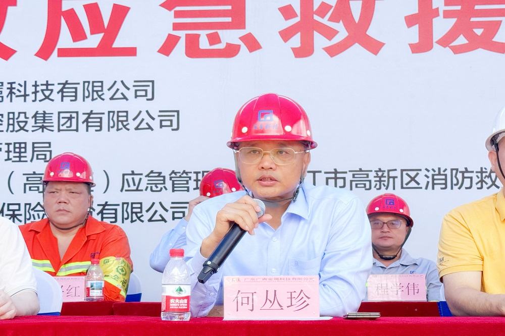 为深入学习贯彻习近平总书记关于安全生产重要论述,全面落实“人人讲安全、个个会应急——查找身边安全隐患”的安全生产月主题,6月24日,广东广青金属科技有限公司在镍铁厂举行2025年矿热炉漏炉安全事故应急救援演练。公司董事、总经理何丛珍等领导班子成员以及260多名员工代表参加演练;广新集团安全总监兼安环部总经理王磊,阳江市应急管理局基础科科长杜锋杰,阳江滨海新区应急管理局局长梁一聪,阳江高新区消防大队、中国人保阳江分公司等相关单位领导到场观摩指导。