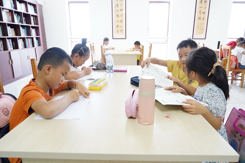 公司外地职工较多,平时大家忙于工作,与孩子们聚少离多。一到暑假,孩子们迫不及待从老家来到公司与爸爸妈妈团聚。上班期间,孩子无人照顾成为了职工忧心的问题。为帮助职工照顾好孩子,让他们安心投入工作,公司今年连续第三年举办了职工子女暑假班。公司聘请了四位专业老师,除辅导孩子们完成暑期作业外,还安排了美术、音乐、手工、朗诵、故事会、电影赏析等课程,希望孩子们在公司度过一个安全、快乐、健康的假期。