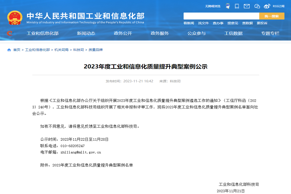 “工业和信息化质量提升典型案例”的遴选及评审,是由工信部发起的面向工信企业的全国性质量评比活动,旨在增强工业和信息化质量管理能力、推动质量技术创新应用、提升产品可靠性水平,及时发现、总结、推广一批示范性强的先进经验,推动制造业高质量发展。