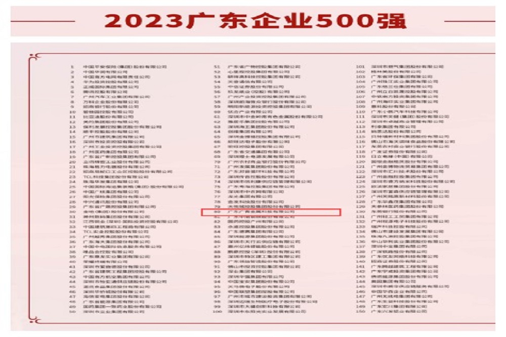 位列广东企业500强第80位
