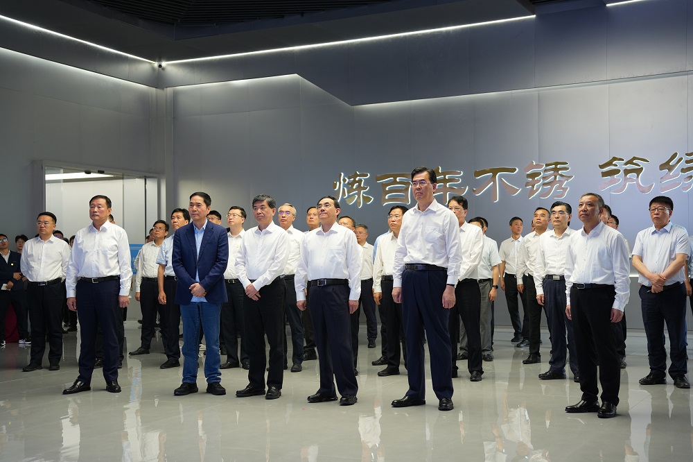 代表团一行来到青拓新材料电子展厅,详细听取了jinnianhui今年会实业与青拓集团的发展历程、项目概况及未来的发展规划等情况的介绍,并步入参观通廊,深入了解不锈钢的分类和不同钢系的应用场景。
